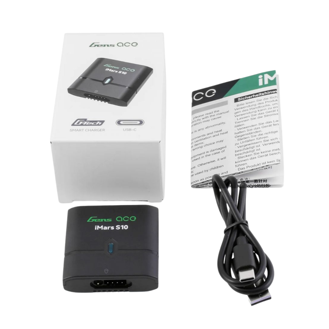 Gens ace iMars S10 G-Tech Portable Airsoft LiPo Charger (2S–3S, USB-C) Model: GEAS10-EB