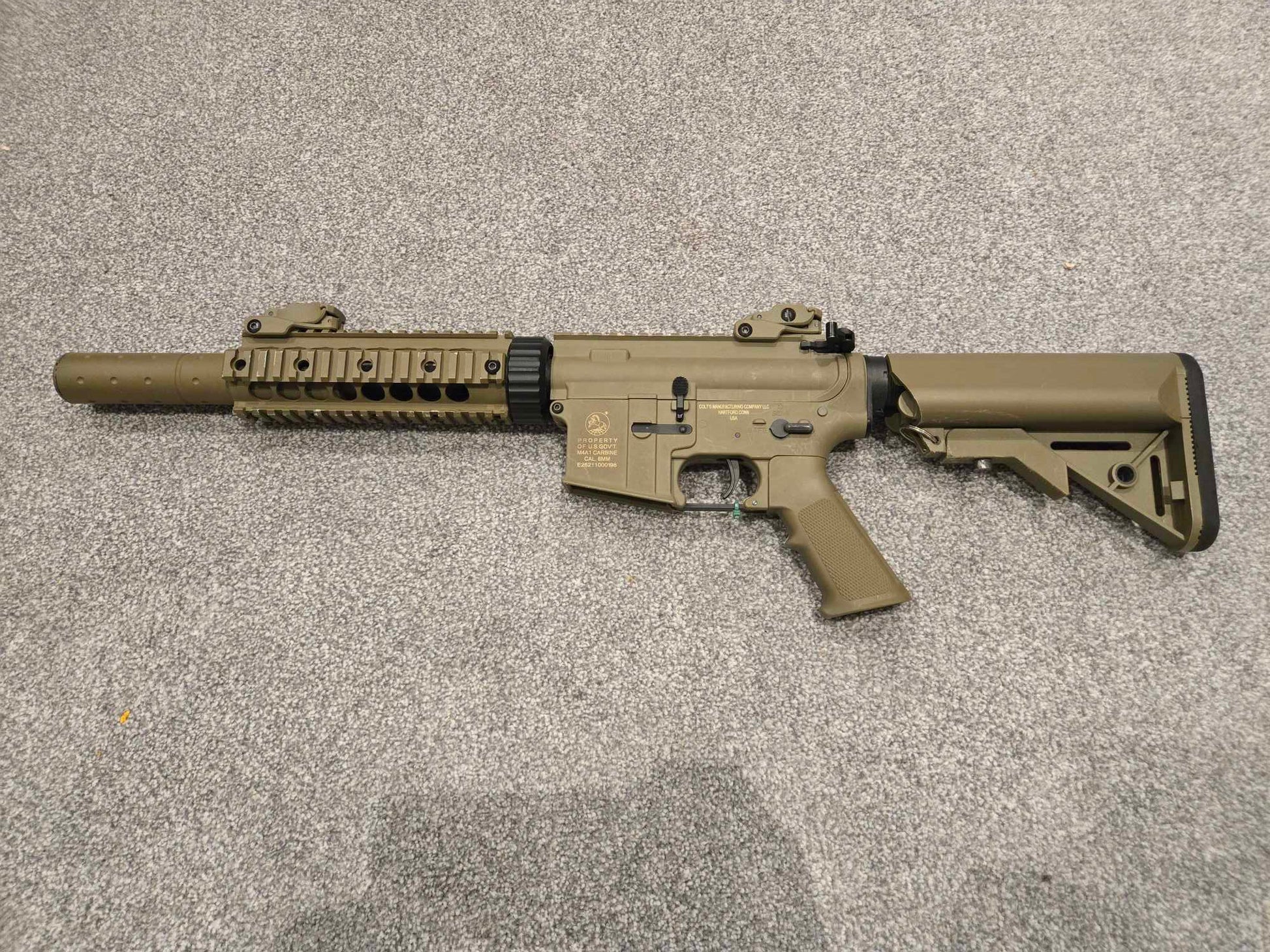 The Colt M45 Silent Ops Tan is a fully licensed M4 AEG designed for reliability and versatility. With its lightweight body, modern aesthetics, and essential tactical features, it’s an excellent choice for entry-level and experienced airsoft players alike. This pre-loved model comes with two magazines and has been carefully inspected for functionality, offering excellent value for money.